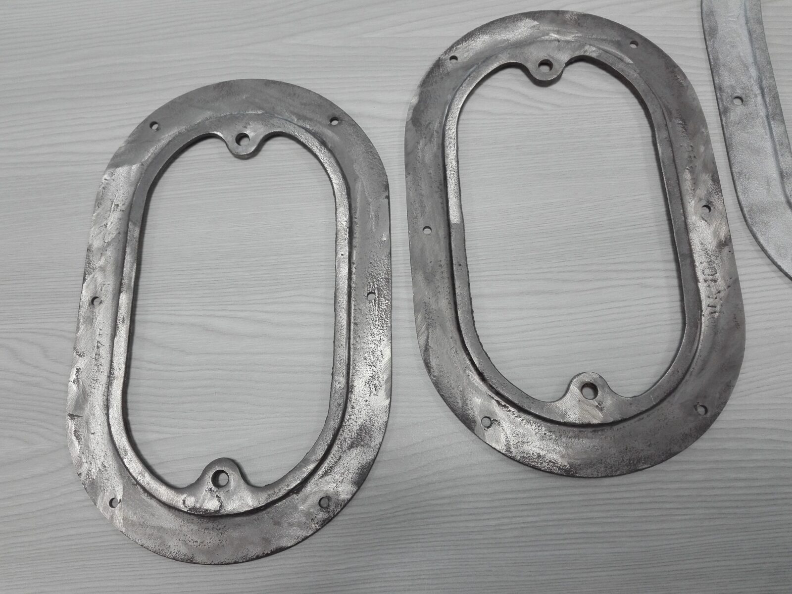 A partir d’un exemplaire détérioré, fabrication de moules sable et coulée de fonte à graphite lamellaire pour obtention des pièces.